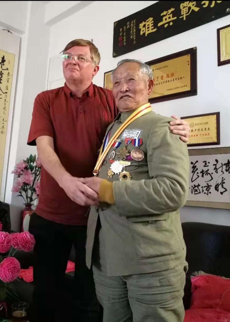 Chris Nash meets Lu Caiwen, a Chinese war hero, during a visit to southwest China's Yunnan province in 2019. (Photo provided by Chris Nash)
