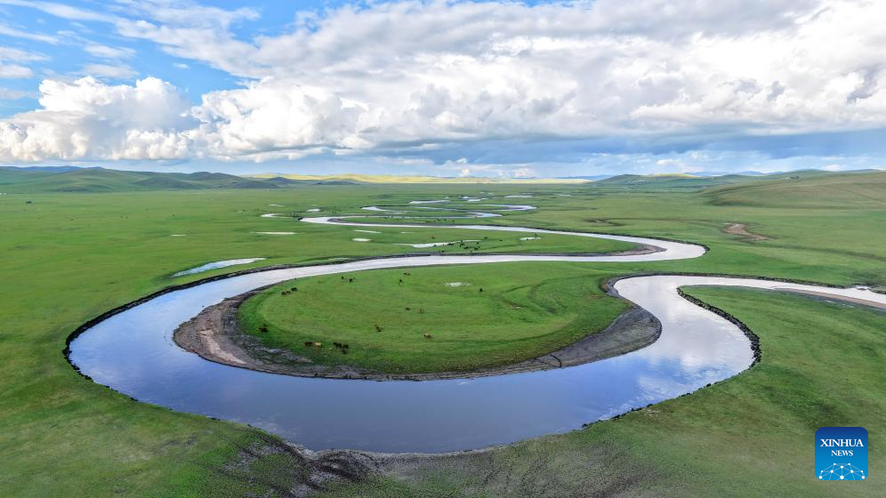 A drone photo taken on Aug. 19, 2025 shows the scenery along the Mergel Gol River in Hulun Buir, north China's Inner Mongolia Autonomous Region. (Xinhua/Ma Jinrui)