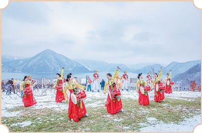 People perform long-drum dance of the Korean ethnic group at the Ice Wine Festival in Ji'an city, a county-level city administered by Tonghua city, northeast China's Jilin Province. (Photo/Bao Yang)