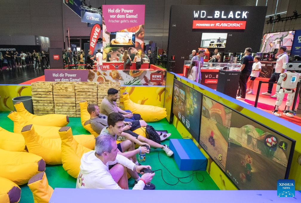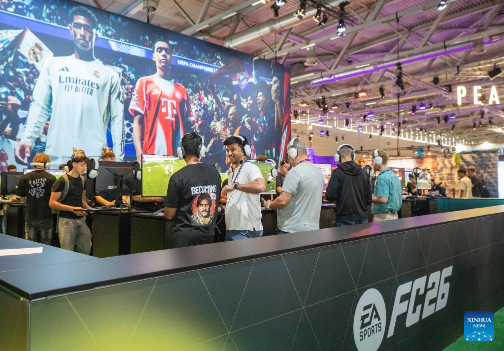People visit Gamescom 2025 in Cologne, Germany, on Aug. 20, 2025. Gamescom 2025, one of the world's largest trade fairs for computer and video games, kicked off here on Wednesday with a record 1,500 exhibitors, highlighting both the industry's global reach and the growing footprint of Chinese developers. (Xinhua/Zhang Fan)