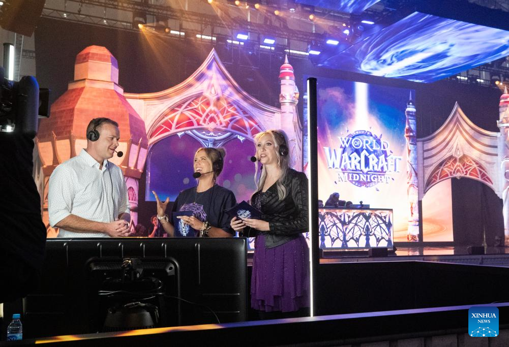 People live stream at Gamescom 2025 in Cologne, Germany, on Aug. 20, 2025. Gamescom 2025, one of the world's largest trade fairs for computer and video games, kicked off here on Wednesday with a record 1,500 exhibitors, highlighting both the industry's global reach and the growing footprint of Chinese developers. (Xinhua/Zhang Fan)