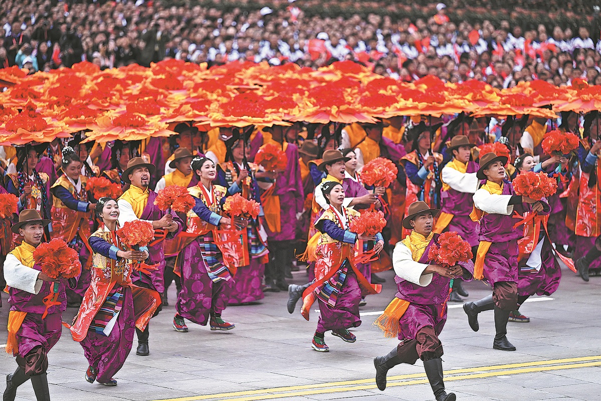 Residents at a mass parade during the grand gathering in Lhasa on Thursday. YAN YAN/XINHUA