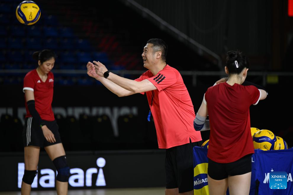 Yang Hao, a coach member of team China, takes part in a training session ahead of the FIVB Women's Volleyball World Championship in Chiang Mai, Thailand, Aug. 21, 2025. (Xinhua/Hou Zhaokang)