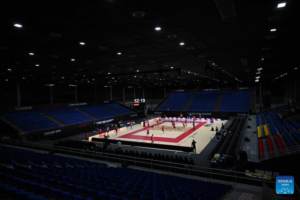 Players of team China take part in a training session ahead of the FIVB Women's Volleyball World Championship in Chiang Mai, Thailand, Aug. 21, 2025. (Xinhua/Hou Zhaokang)