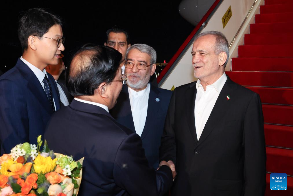 Iran's President Masoud Pezeshkian arrives for the Shanghai Cooperation Organization (SCO) Summit 2025 in Tianjin, north China, Aug. 31, 2025. (Xinhua/Yang Qing)