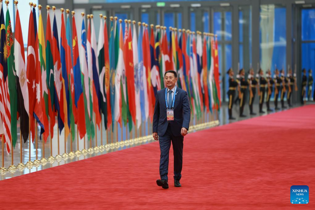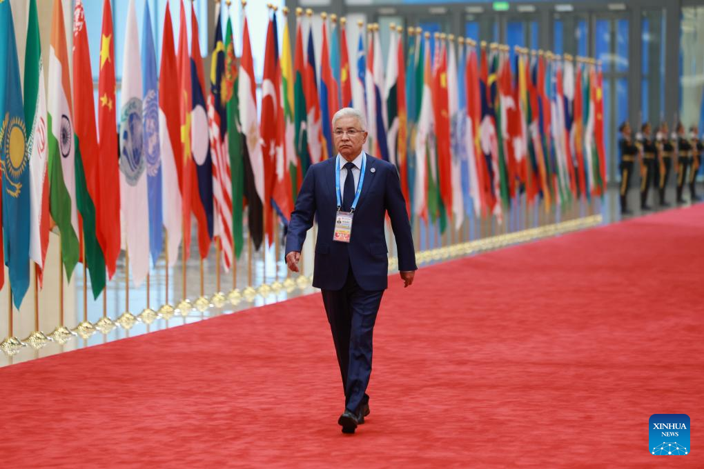 Director of the Executive Committee of the Shanghai Cooperation Organization (SCO) Regional Anti-Terrorist Structure Ularbek Sharsheev arrives at the Meijiang Convention and Exhibition Center for a welcoming banquet in Tianjin, north China, Aug. 31, 2025. Chinese President Xi Jinping and his wife, Peng Liyuan, on Sunday hosted a banquet in China's port city of Tianjin to welcome international guests who are here to attend the Shanghai Cooperation Organization (SCO) Summit 2025. (Xinhua/Ding Haitao)