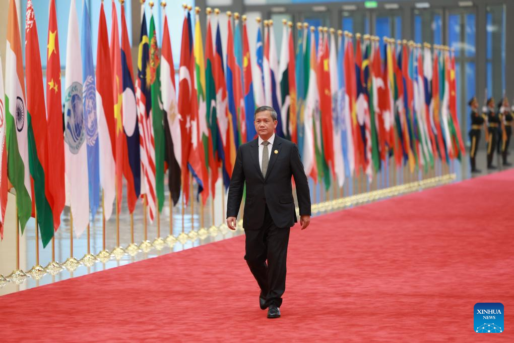 Cambodian Prime Minister Hun Manet arrives at the Meijiang Convention and Exhibition Center for a welcoming banquet in Tianjin, north China, Aug. 31, 2025. Chinese President Xi Jinping and his wife, Peng Liyuan, on Sunday hosted a banquet in China's port city of Tianjin to welcome international guests who are here to attend the Shanghai Cooperation Organization (SCO) Summit 2025. (Xinhua/Ding Haitao)