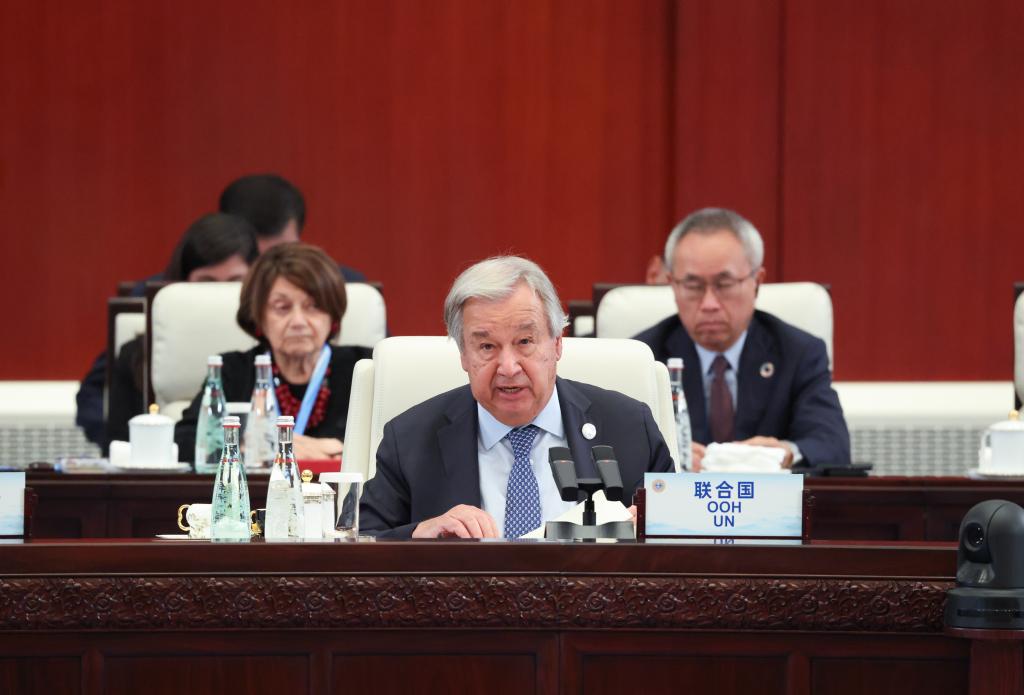 UN Secretary-General Antonio Guterres attends the "Shanghai Cooperation Organization (SCO) Plus" Meeting in Tianjin, north China, Sept. 1, 2025. The Shanghai Cooperation Organization (SCO) convened the "SCO Plus" Meeting on Monday afternoon in north China's port city of Tianjin. (Xinhua/Ding Haitao)