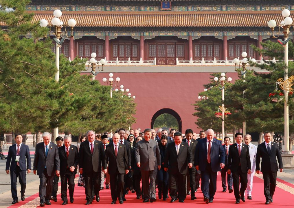 Chinese President Xi Jinping, also general secretary of the Communist Party of China Central Committee and chairman of the Central Military Commission, and foreign leaders walk to Tian'anmen Rostrum ahead of a grand gathering to commemorate the 80th anniversary of the victory in the Chinese People's War of Resistance against Japanese Aggression and the World Anti-Fascist War in Beijing, capital of China, Sept. 3, 2025. (Xinhua/Ding Lin)