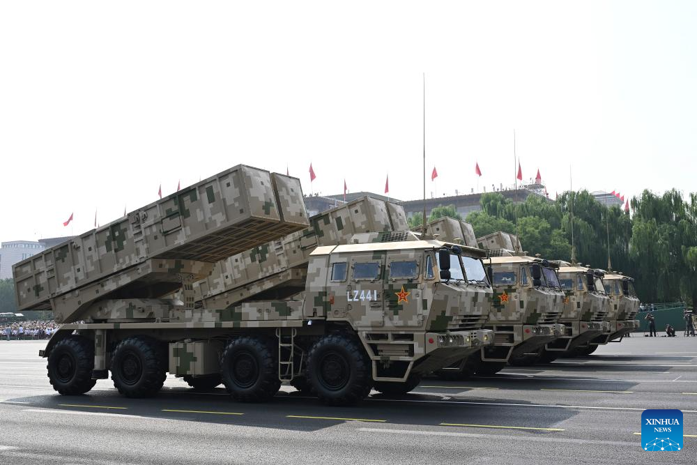 The long-range artillery formation attends a parade during a grand gathering to commemorate the 80th anniversary of the victory in the Chinese People's War of Resistance against Japanese Aggression and the World Anti-Fascist War in Beijing, capital of China, Sept. 3, 2025. (Xinhua/Yang Guanyu)