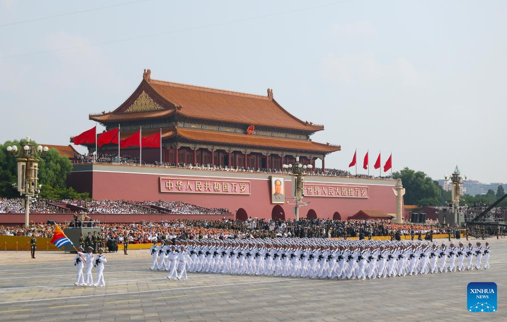 The Chinese People's Liberation Army (PLA) Navy formation attends a military parade in Beijing, capital of China, Sept. 3, 2025. China on Wednesday held a grand gathering to commemorate the 80th anniversary of the victory in the Chinese People's War of Resistance against Japanese Aggression and the World Anti-Fascist War. (Xinhua/Huang Wei)