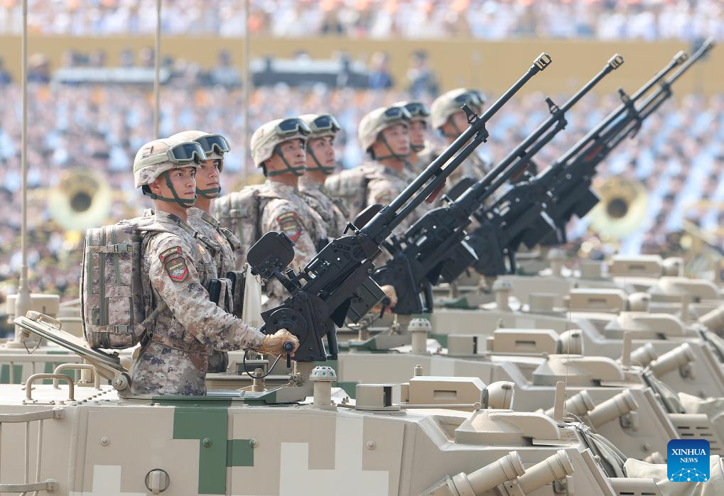The amphibious assault formation marches through Tian'anmen Square during a military parade in Beijing, capital of China, Sept. 3, 2025. China on Wednesday held a grand gathering to commemorate the 80th anniversary of the victory in the Chinese People's War of Resistance against Japanese Aggression and the World Anti-Fascist War. (Xinhua/Liu Dawei)