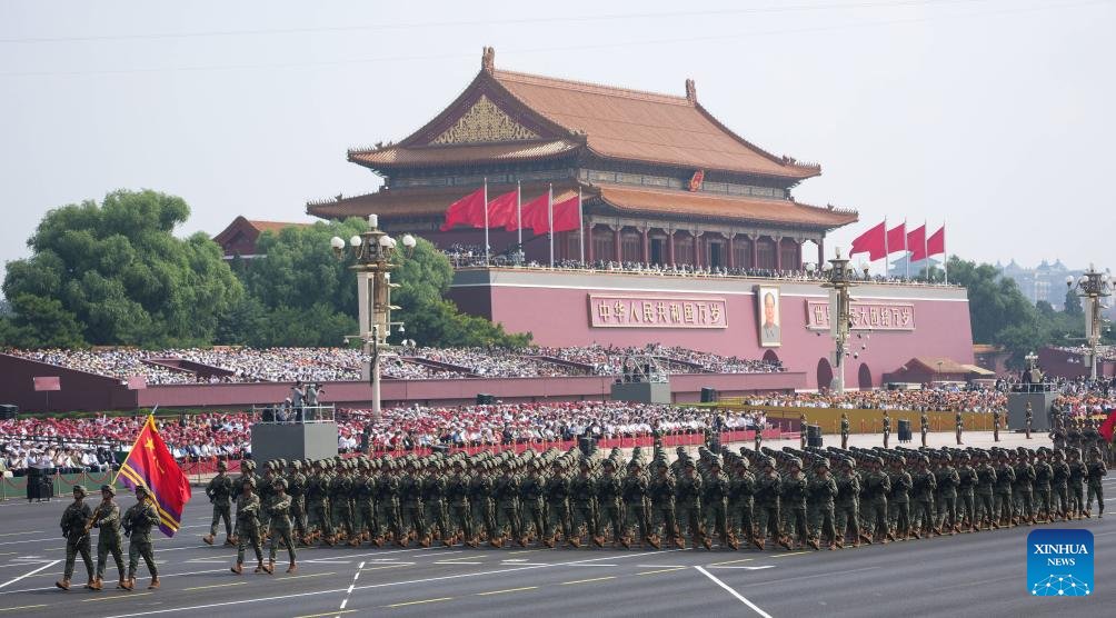 The formation of the People's Liberation Army Rocket Force marches through Tian'anmen Square during a military parade in Beijing, capital of China, Sept. 3, 2025. China on Wednesday held a grand gathering to commemorate the 80th anniversary of the victory in the Chinese People's War of Resistance against Japanese Aggression and the World Anti-Fascist War. (Xinhua/Xu Chang)