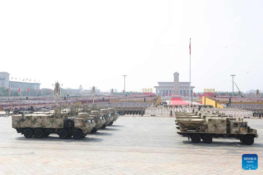 The electronic countermeasures formation attends a military parade in Beijing, capital of China, Sept. 3, 2025. China on Wednesday held a grand gathering to commemorate the 80th anniversary of the victory in the Chinese People's War of Resistance against Japanese Aggression and the World Anti-Fascist War. (Xinhua/Chen Bin)