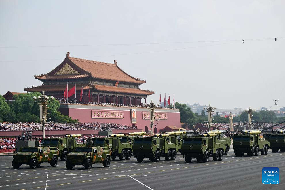 The underwater weaponry formation attends a military parade in Beijing, capital of China, Sept. 3, 2025. China on Wednesday held a grand gathering to commemorate the 80th anniversary of the victory in the Chinese People's War of Resistance against Japanese Aggression and the World Anti-Fascist War. (Xinhua/Xiong Qi)