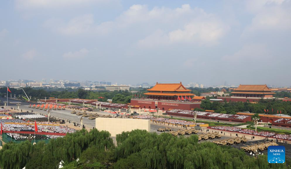 A grand gathering to commemorate the 80th anniversary of the victory in the Chinese People's War of Resistance against Japanese Aggression and the World Anti-Fascist War is held in Beijing, capital of China, Sept. 3, 2025. (Xinhua/Zhang Chenlin)