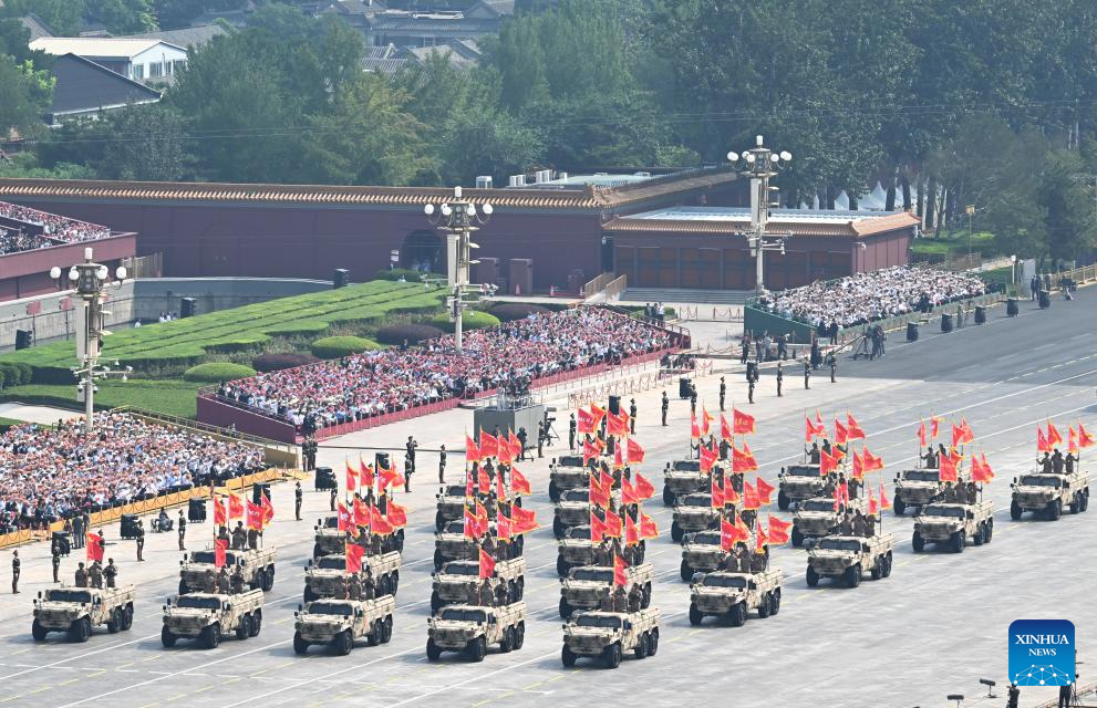 The armament support formation attends a military parade in Beijing, capital of China, Sept. 3, 2025. China on Wednesday held a grand gathering to commemorate the 80th anniversary of the victory in the Chinese People's War of Resistance against Japanese Aggression and the World Anti-Fascist War. (Xinhua/Huang Wei)