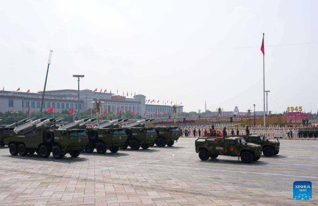 The air defense weaponry formation attends a military parade in Beijing, capital of China, Sept. 3, 2025. China on Wednesday held a grand gathering to commemorate the 80th anniversary of the victory in the Chinese People's War of Resistance against Japanese Aggression and the World Anti-Fascist War. (Xinhua/Chen Bin)