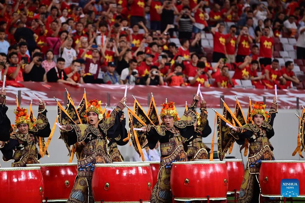 Actors perform before the AFC U23 Asian Cup Qualifiers Group D football match between China and Timor-Leste in Xi'an, northwest China's Shaanxi Province, Sept. 3, 2025. (Xinhua/Zou Jingyi)