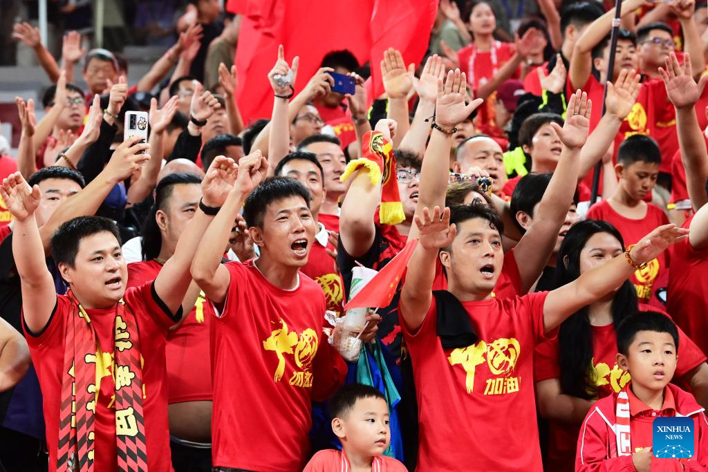 Supporters of team China celebrate victory after the AFC U23 Asian Cup Qualifiers Group D football match between China and Timor-Leste in Xi'an, northwest China's Shaanxi Province, Sept. 3, 2025. (Xinhua/Zou Jingyi)
