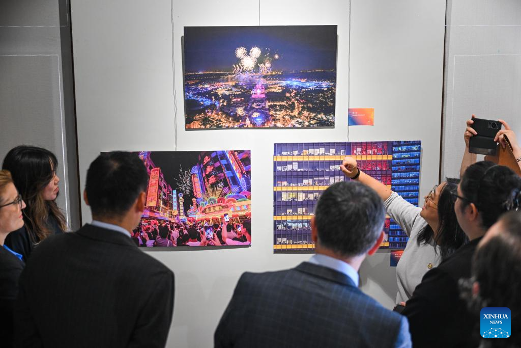A man visits the "Amazing Shanghai" City Branding Campaign and Shanghai-Istanbul Visual Arts Exhibition in Istanbul, Trkiye, Sept. 5, 2025. The "Amazing Shanghai" City Branding Campaign and Shanghai-Istanbul Visual Arts Exhibition was held in Istanbul on Friday. The event brought together nearly a hundred works of photography, illustrations and videos from artists of both China and Trkiye, showcasing urban landscapes and cultural essence of the two port cities. (Xinhua/Liu Lei)