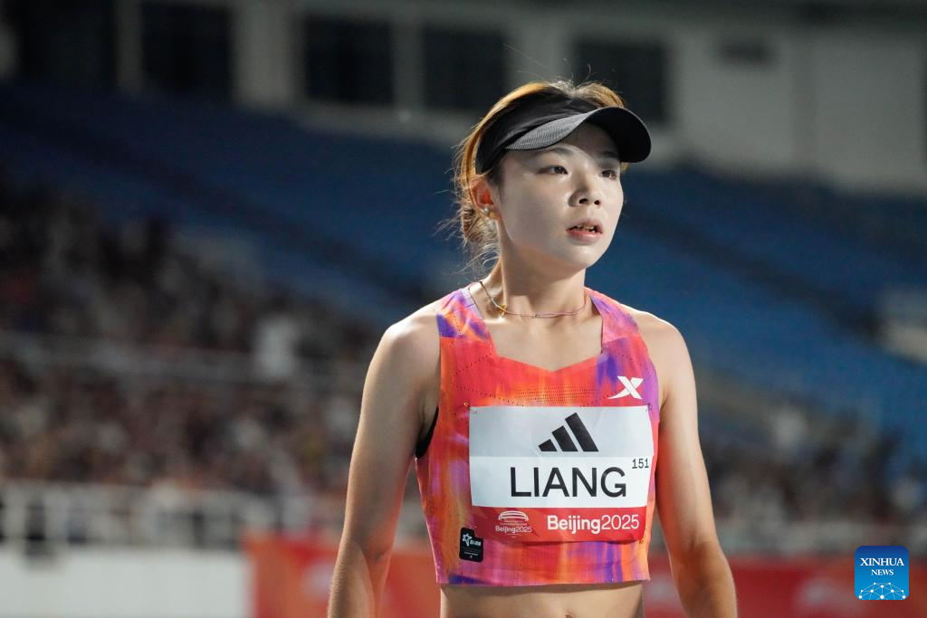 Liang Tiantian of China competes during the Women's 3000M event at 2025 World Athletics Continental Tour in Beijing, China, on Sept. 7, 2025. (Xinhua/Ju Huanzong)
