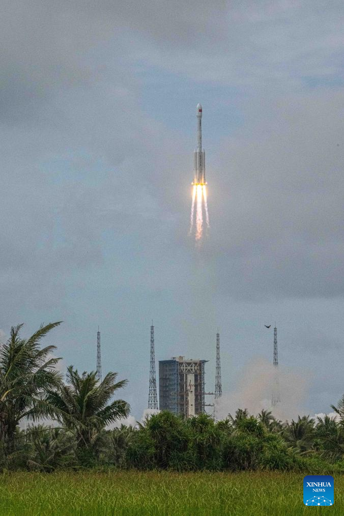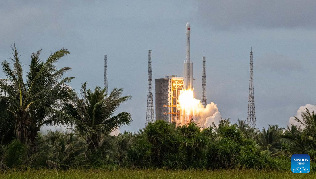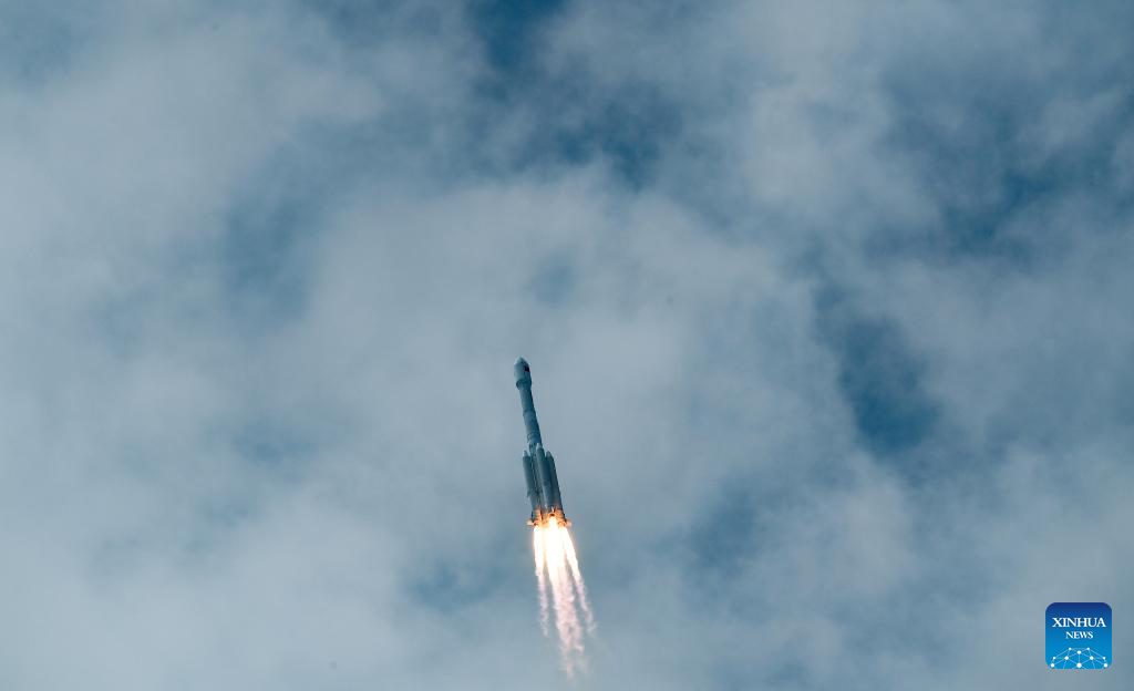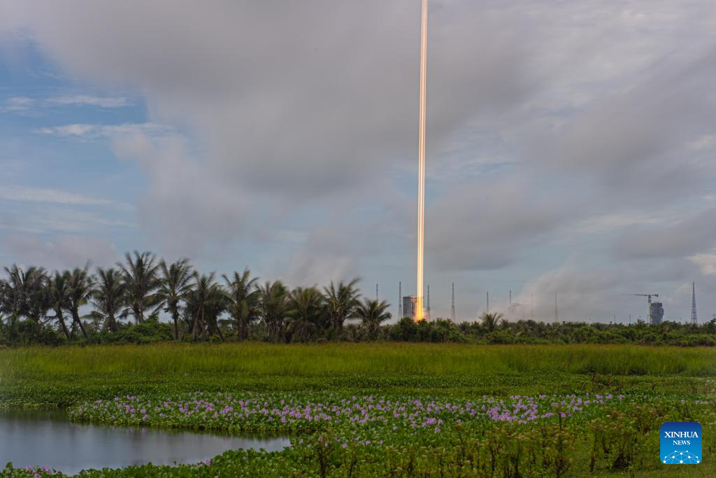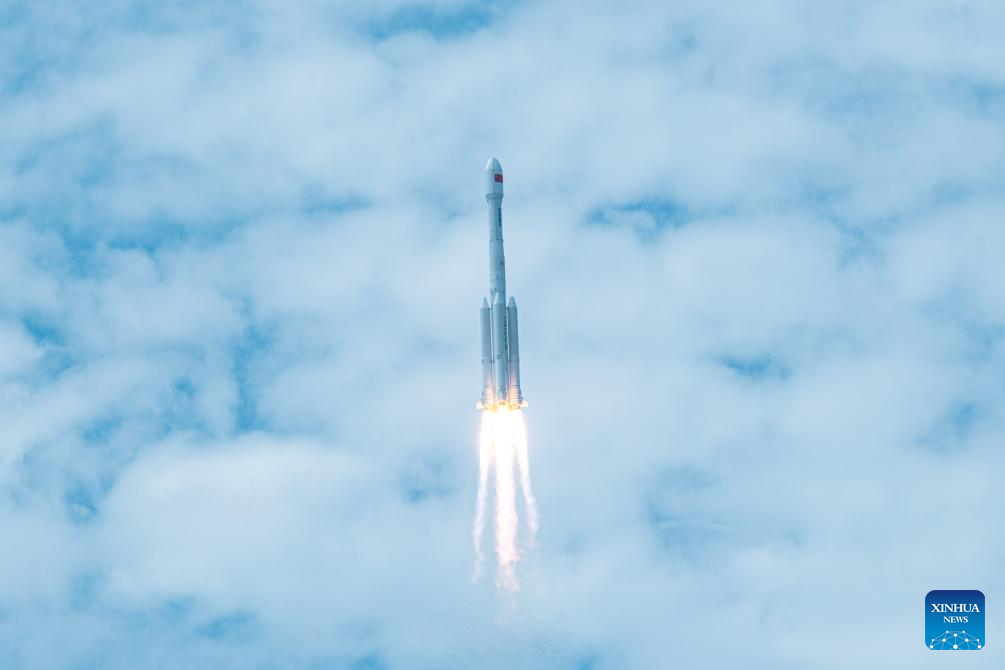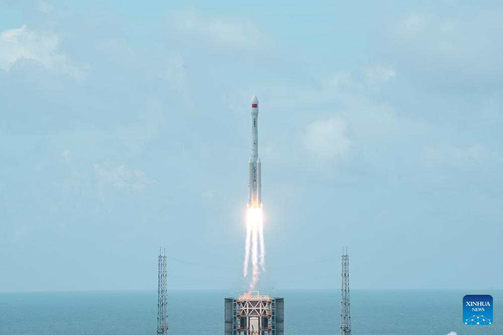 A modified Long March-7 carrier rocket carrying the Yaogan-45 satellite blasts off from the Wenchang Spacecraft Launch Site in south China's Hainan Province, Sept. 9, 2025. (Xinhua/Pu Xiaoxu)
