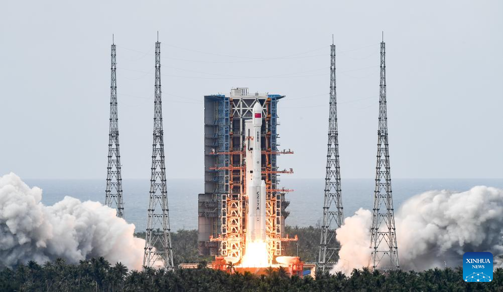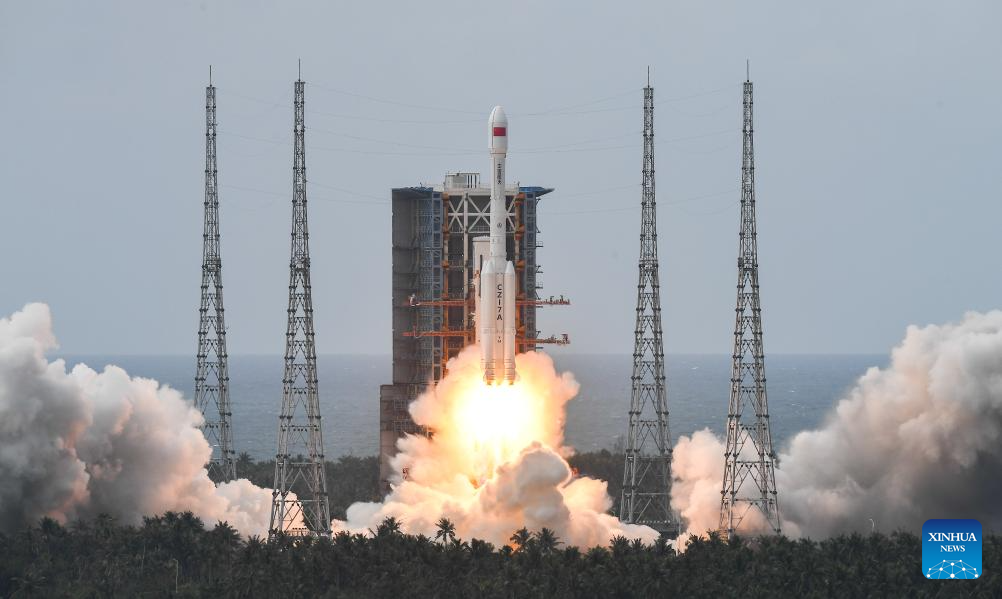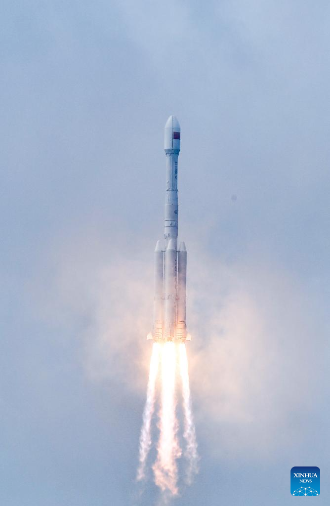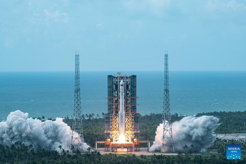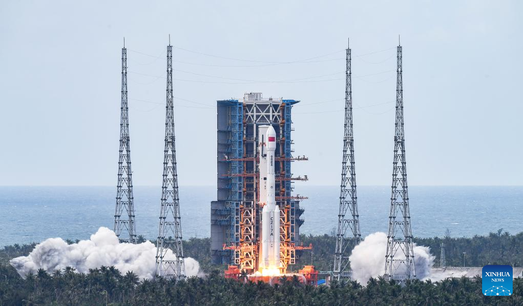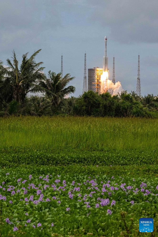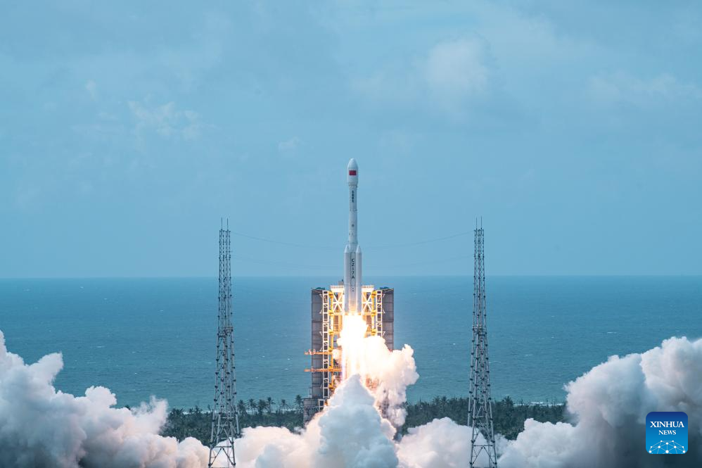 A modified Long March-7 carrier rocket carrying the Yaogan-45 satellite blasts off from the Wenchang Spacecraft Launch Site in south China's Hainan Province, Sept. 9, 2025. (Xinhua/Pu Xiaoxu)