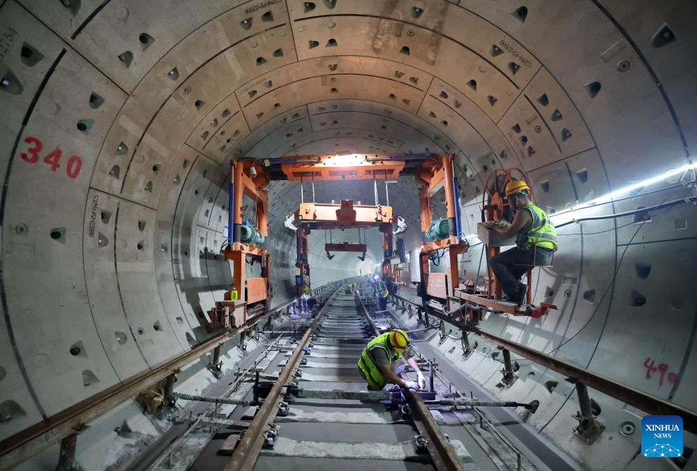 Constructors work at the construction site of a metro station in Shijiazhuang, north China's Hebei Province, Sept. 7, 2025. As of the first half of 2025, the Shijiazhuang Metro has operated a total of 2.0083 million train trips, safely transporting 942 million passengers. Initiated in June 2017, the city's metro system now stretches 78.2 kilometers with 60 stations in service. (Xinhua/Yang Shiyao)