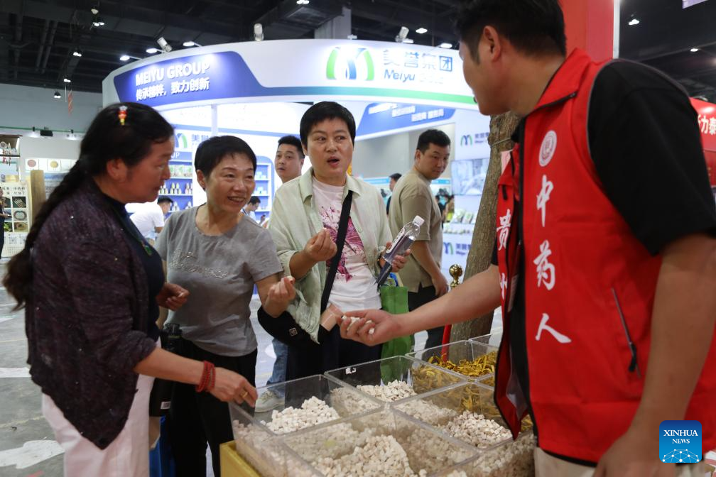 Visitors learn about traditional Chinese medicine (TCM) products during 2025 International (Bozhou) TCM Expo and the 41st National (Bozhou) TCM Trade Fair in Bozhou, east China's Anhui Province, Sept. 8, 2025. The expo has attracted many international traders, presenting opportunities to further boost the global reach of TCM. (Xinhua)