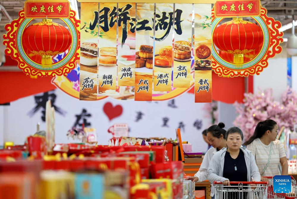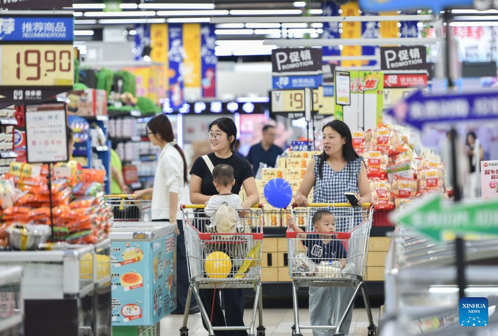 Consumers shop at a supermarket in Tengzhou, east China's Shandong Province, Sept. 10, 2025. (Photo by Sun Yang/Xinhua)