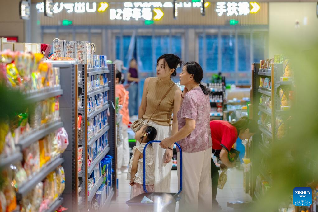 Consumers shop at a supermarket in Qingzhou, east China's Shandong Province, Sept. 10, 2025. (Photo by Wang Jilin/Xinhua)