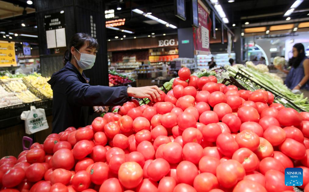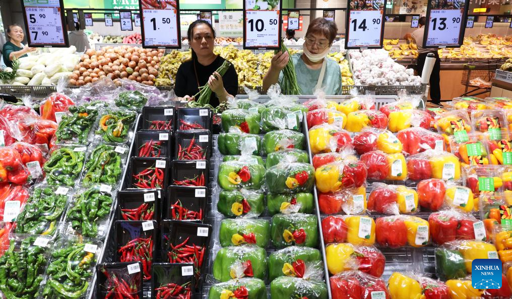 Consumers buy vegetables at a supermarket in Haizhou District of Lianyungang, east China's Jiangsu Province, Sept. 10, 2025. (Photo by Geng Yuhe/Xinhua)