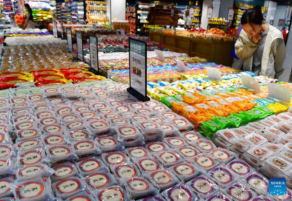 A consumer shops at a supermarket in Wuxi, east China's Jiangsu Province, Sept. 10, 2025. (Photo by Huan Yueliang/Xinhua)