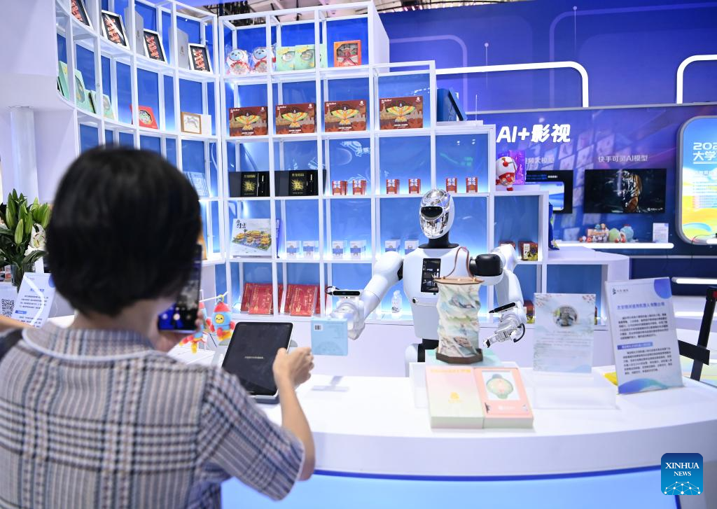 A child looks at a latest AI educational product at the 2025 China International Fair for Trade in Services (CIFTIS) in Beijing, capital of China, Sept. 11, 2025. The 2025 CIFTIS opened in Beijing on Wednesday, themed "Embrace Intelligent Technologies, Empower Trade in Services." (Xinhua/Xiao Xiao)