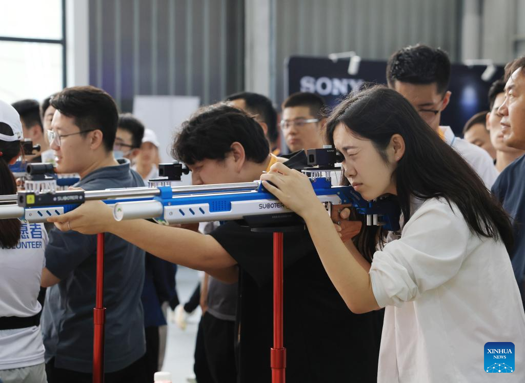 Visitors experience laser shooting at the sports services exhibition area of the 2025 China International Fair for Trade in Services (CIFTIS) in Beijing, capital of China, Sept. 11, 2025. The 2025 CIFTIS opened in Beijing on Wednesday, themed "Embrace Intelligent Technologies, Empower Trade in Services." (Xinhua/Zhang Chenlin)