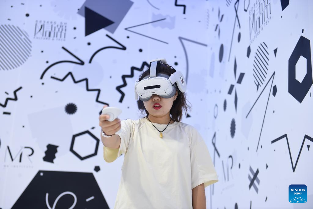 A visitor experiences an immersive VR project at the 2025 China International Fair for Trade in Services (CIFTIS) in Beijing, capital of China, Sept. 11, 2025. The 2025 CIFTIS opened in Beijing on Wednesday, themed "Embrace Intelligent Technologies, Empower Trade in Services." (Xinhua/Liu Lingyi)