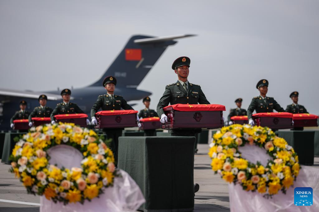 SHENYANG, Sept. 12 (Xinhua) -- The remains of 30 Chinese People's Volunteers (CPV) soldiers who lost their lives during the War to Resist U.S. Aggression and Aid Korea were returned to China on Friday from the Republic of Korea (ROK).