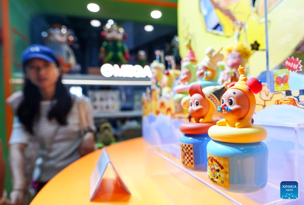 People view products of Pop Mart displayed at the 2025 China International Fair for Trade in Services (CIFTIS) in Beijing, capital of China, Sept. 12, 2025. The 2025 CIFTIS is held from Sept. 10 to 14 at the Shougang Park in Beijing. This year's fair features a wide range of cultural and creative products, which are highly popular among visitors. (Xinhua/Chen Yehua)