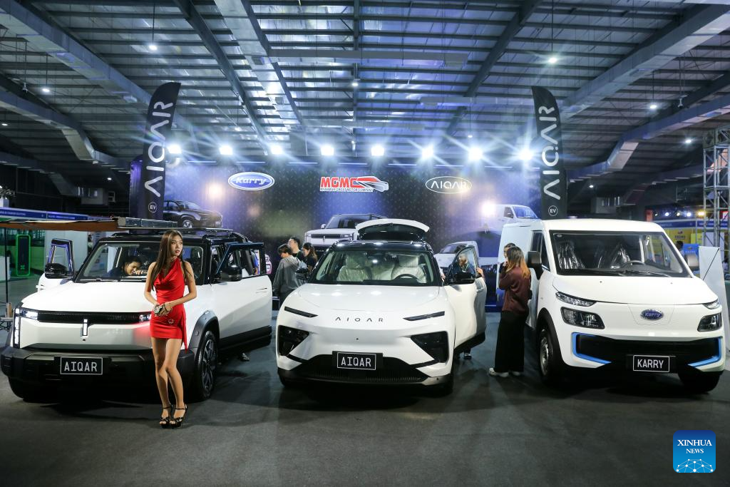 People visit the booth of BYD at the Myanmar Auto &Parts Expo 2025 in Yangon, Myanmar, Sept. 12, 2025. The expo kicked off here on Friday. (Xinhua/Myo Kyaw Soe)