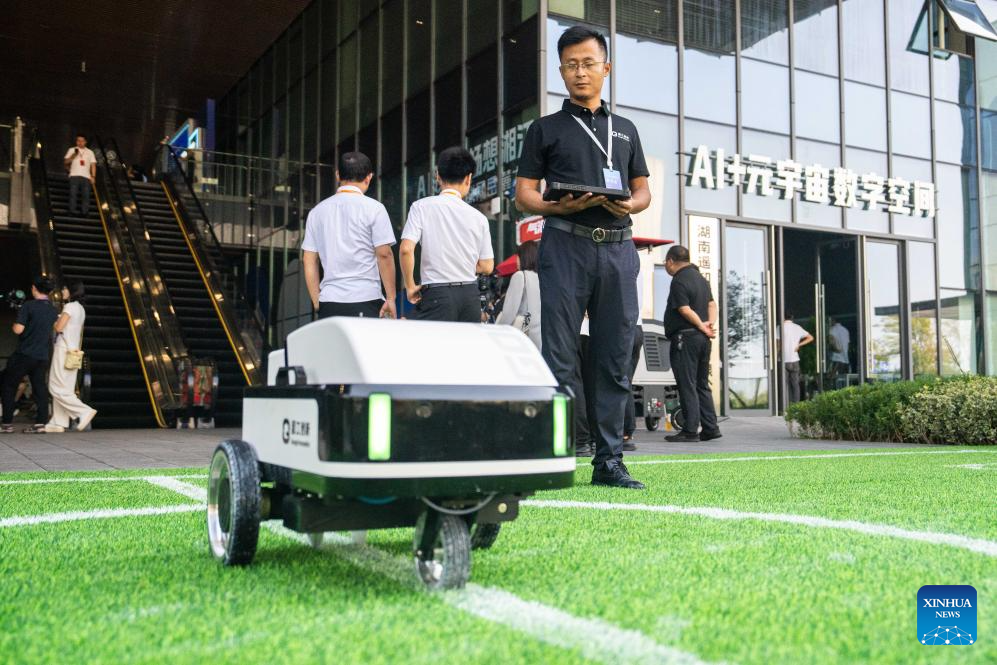 This photo taken on Sept. 15, 2025 shows a scene during the Internet Yuelu Summit 2025 in Xiangjiang New Area of Changsha, central China's Hunan Province. Focusing on cutting-edge technologies such as artificial intelligence, the summit kicked off here on Monday. (Xinhua/Chen Sihan)