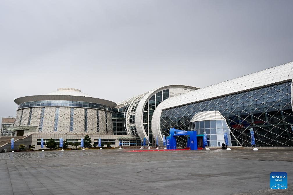 This photo taken on Sept. 16, 2025 shows an exterior view of the venue for the opening ceremony of the 10th Kubuqi International Desert Forum in Ordos, north China's Inner Mongolia Autonomous Region. The event kicked off here on Tuesday under the theme "Scientific Desertification Control, Green Development." (Xinhua/Li Zhipeng)