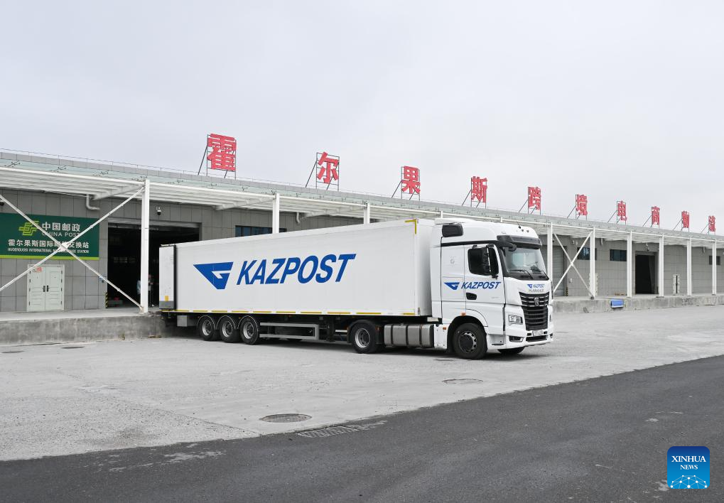 A postal truck from Kazakhstan loads international mails at the international mail exchange station in Horgos, northwest China's Xinjiang Uygur Autonomous Region, Sept. 11, 2025. The exchange station in Horgos was officially put into operation in July of 2022, providing comprehensive solutions for warehousing and logistics of cross-border e-commerce industry chain. Over the past three years, it has exchanged 2,026 tons of international mail in total. In recent years, the Xinjiang Branch of China Post has extended its postal services to local communities of remote area and border outposts. Additionally, it has built a high-quality agricultural product supply chain across the region, facilitating the sales of local premium agricultural products and contributing to rural revitalization.
