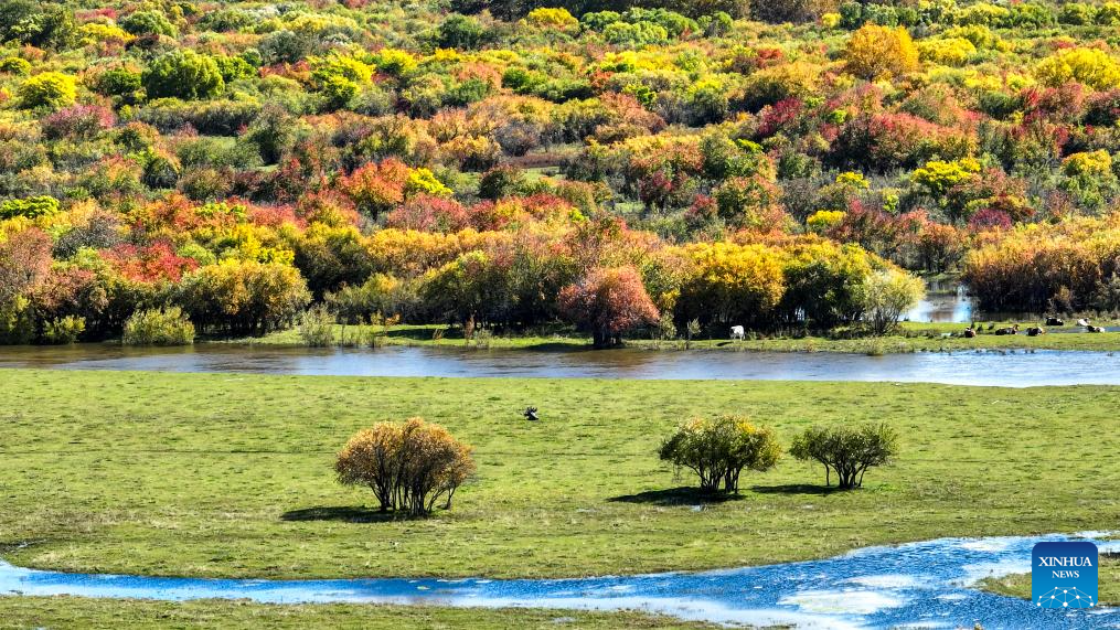 A drone photo taken on Sept. 16, 2025 shows a view of the Ergune Wetland Nature Reserve in Hulun Buir, north China's Inner Mongolia Autonomous Region. (Xinhua/Ma Jinrui)