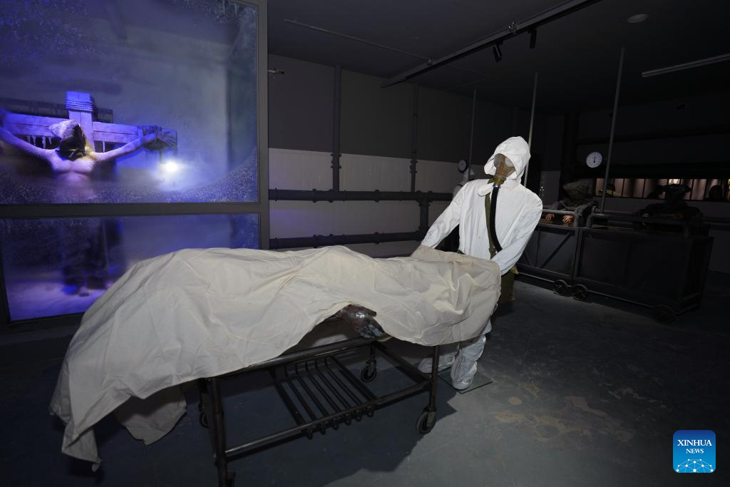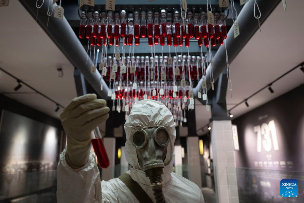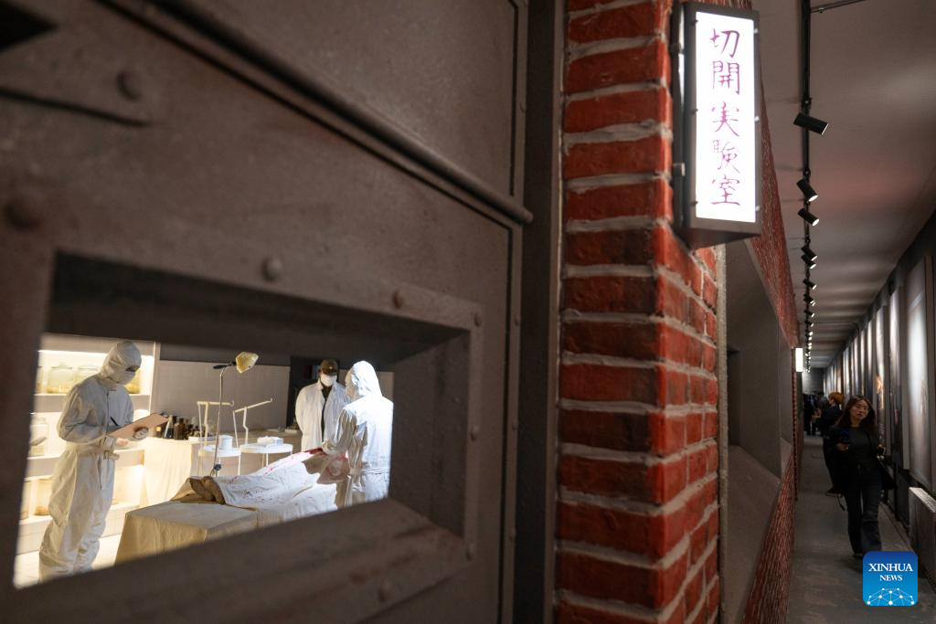 This photo shows a view at a special exhibition on the shooting process of Evil Unbound, a film about Unit 731, in Harbin, northeast China's Heilongjiang Province, Sept. 17, 2025.
