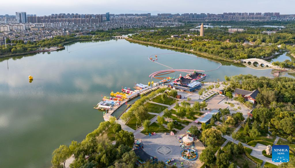 An aerial drone photo taken on Sept. 17, 2025 shows a view of Haibao Park in Yinchuan, northwest China's Ningxia Hui Autonomous Region.