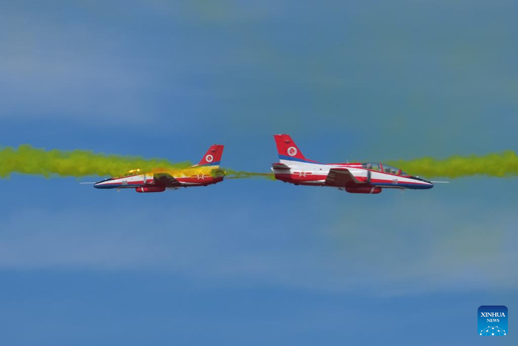 Aircraft of the Bayi Aerobatic Team of the Chinese People's Liberation Army Air Force perform during the 2025 aviation open-day activities of the Chinese People's Liberation Army Air Force and Changchun Air Show in Changchun, northeast China's Jilin Province, Sept. 19, 2025. The events kicked off here on Friday. (Xinhua/Tang Chengzhuo)