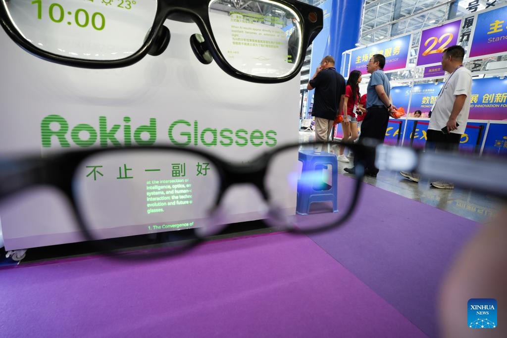This photo taken on Sept. 19, 2025 shows pairs of AR glasses at the Nanning International Convention and Exhibition Center in Nanning, capital of south China's Guangxi Zhuang Autonomous Region. Products involving cutting-edge technologies such as artificial intelligence, low-altitude economy and humanoid robots are showcased during the ongoing 22nd China-ASEAN Expo.