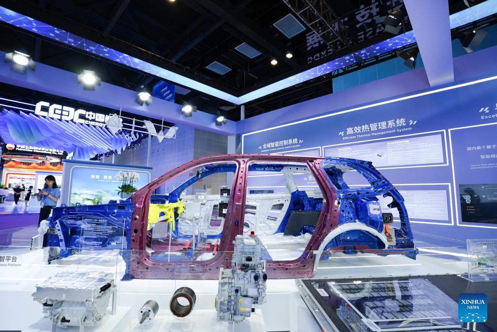 This photo taken on Sept. 19, 2025 shows a booth of the electric vehicles at the Nanning International Convention and Exhibition Center in Nanning, capital of south China's Guangxi Zhuang Autonomous Region. Products involving cutting-edge technologies such as artificial intelligence, low-altitude economy and humanoid robots are showcased during the ongoing 22nd China-ASEAN Expo.