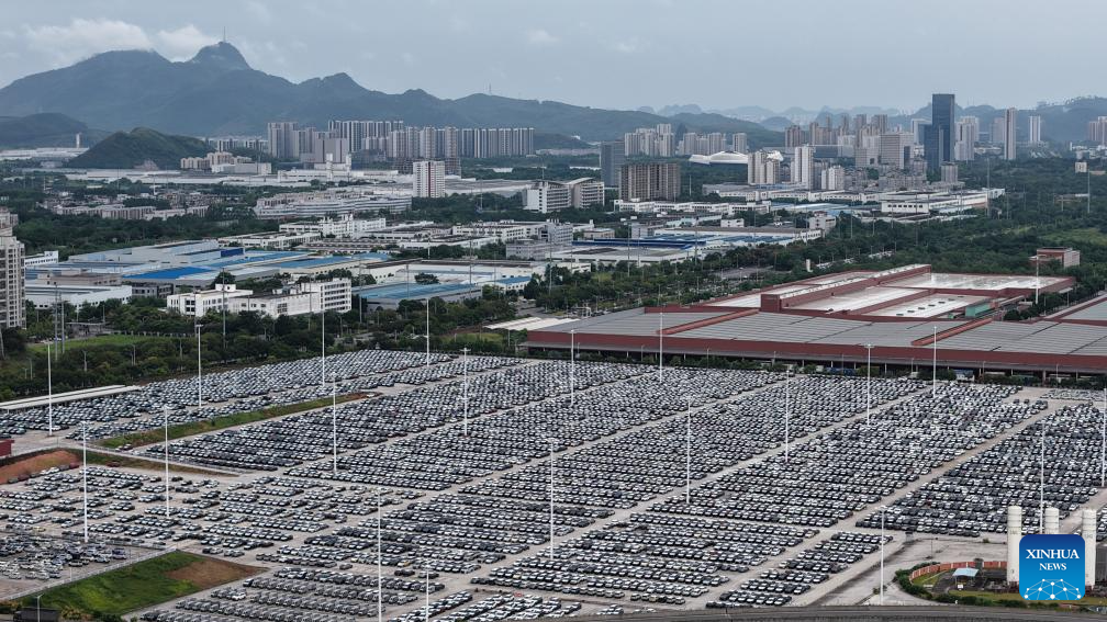 This aerial drone photo taken on Sept. 8, 2025 shows an auto logistics base in Liuzhou, south China's Guangxi Zhuang Autonomous Region. At the ongoing 22nd China-ASEAN Expo, new energy vehicles produced in Liuzhou of Guangxi and empowered by artificial intelligence draw wide attention from both domestic and overseas businesses and visitors. (Xinhua/Huang Xiaobang)